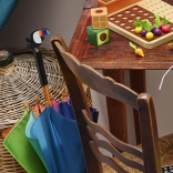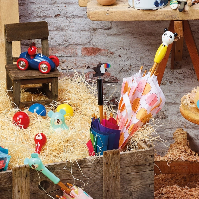 Az igényes ANDY WESTFACE dizájn egyszerű formákat és élénk színeket ötvöz, amelyek serkentik a képzeletet és jókedvet árasztanak. A kényelmes fa fogantyúval az esernyő a kisebb gyerekkezekben is jól tartható.
