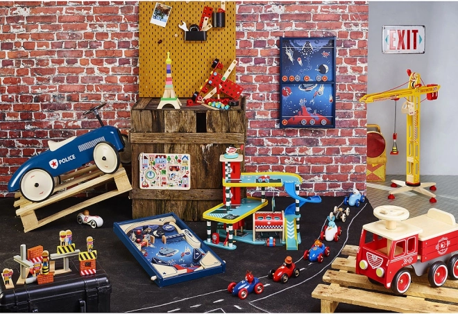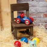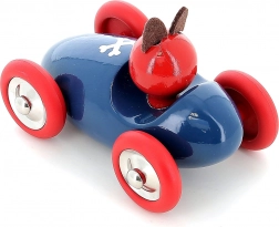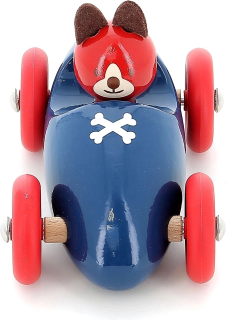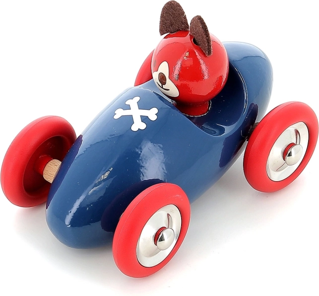 A Lucien kutyás versenyautó ikonikus kék–piros kivitelben készül, minőségi fából, egyedülálló merítési lakkozási technológiával, amely sima felületet, intenzív színeket és hosszú élettartamot biztosít. A gyerekek imádni fogják a könnyű gurulást, a kellemes formákat és a barátságos sofőrarcot.