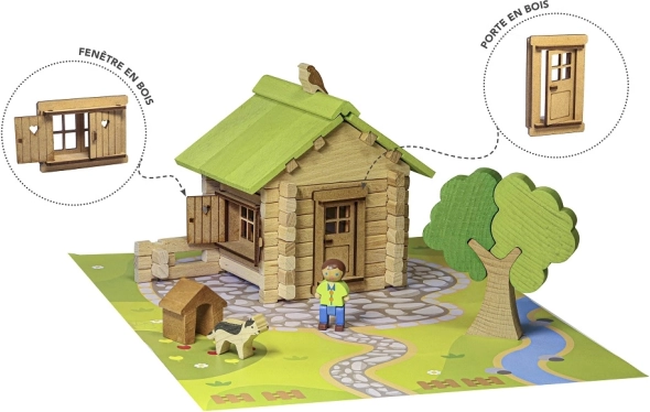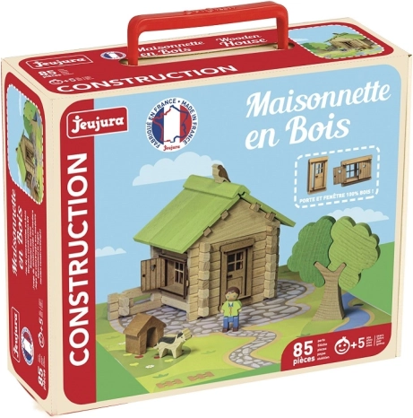Építsd meg saját galériás házikódat tömör fából! A hagyományos JEUJURA építőkészlet 85 darabbal érkezik, vízbázisú lakkokkal színezve és felületkezelve, fejleszti a kreativitást, a finommotorikát és a térérzékelést. Franciaországban készült, praktikus bőröndben, áttekinthető útmutatóval.
