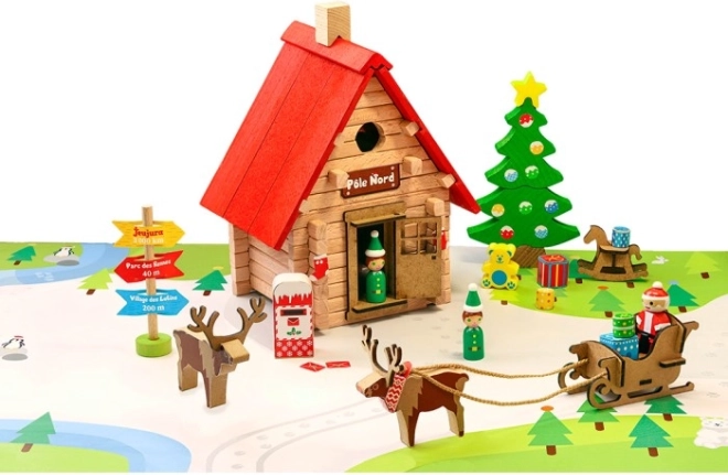Fedezze fel a karácsony varázsát a JEUJURA – Karácsonyi házikó 90 darabból álló fa építőkészletével. Építse meg saját téli jelenetét Mikulás házikójával, manókkal, rénszarvasok által húzott szánnal és karácsonyfával. A készlet Franciaországban készült, minőségi tömör fából, és praktikus hordozható kartondobozban érkezik. 90 darab tömör fából, karácsonyi motívum Mikulással, vízbázisú, környezetbarát festékek, praktikus csomagolás útmutatóval.