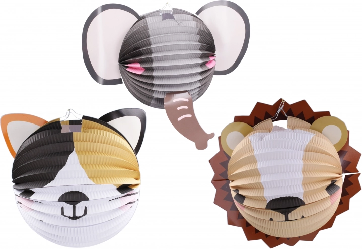 Lampion Labda Állatkák kiváló légkört teremt és különlegessé tesz minden helyiséget vagy bulit. Válasszon a három különböző motívum közül: elefánt, oroszlán és macska, amelyek nemcsak a gyerekeket, hanem a felnőtteket is elvarázsolják.