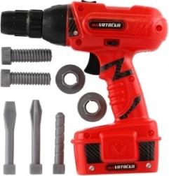 Akkus fúró gyerekeknek, amely sok szórakozást nyújt a házi javítások játék közben. Tartalmaz cserélhető feltéteket és kiad valósághű fúró hangokat.