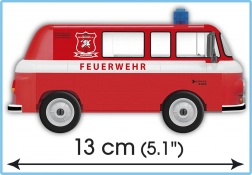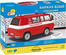 A Barkas B1000 ikonikus furgon és mikrobusz volt, amelyet 1961–1991 között gyártottak az egykori NDK-ban. A Feuerwehr változatot a tűzoltóság igényeihez igazították. Ez a COBI készlet hűen ragadja meg a történelmi jármű karakterét 1:35 méretarányban, és a minőségi nyomatoknak köszönhetően matricák nélkül is nagyszerűen mutat.