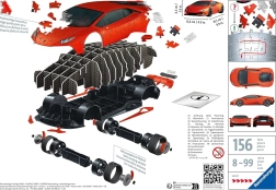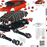 3D puzzle Lamborghini Huracán Evo Arancio egyedülálló élményt nyújt a háromdimenziós modellalkotásból. Az erős műanyag elemek révén stabilitás garantált ragasztás nélkül.