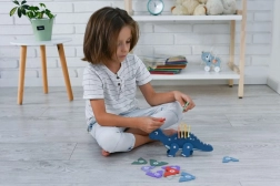 A színes dinoszaurusz puzzle segít a gyermekeknek javítani finommotorikus képességeiket és koordinációjukat.