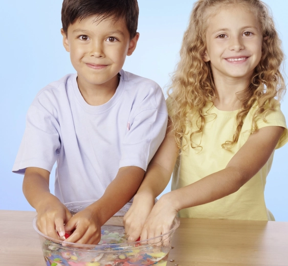A megtöltött forma előkészített oldatba merítése után a gél néhány másodperc alatt puha 3D figurává alakul, amely magától felúszik és már kész is a játékra.