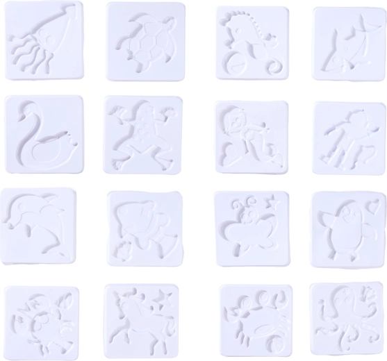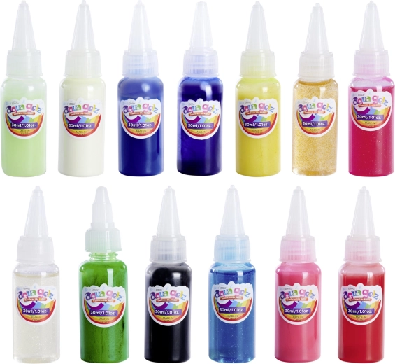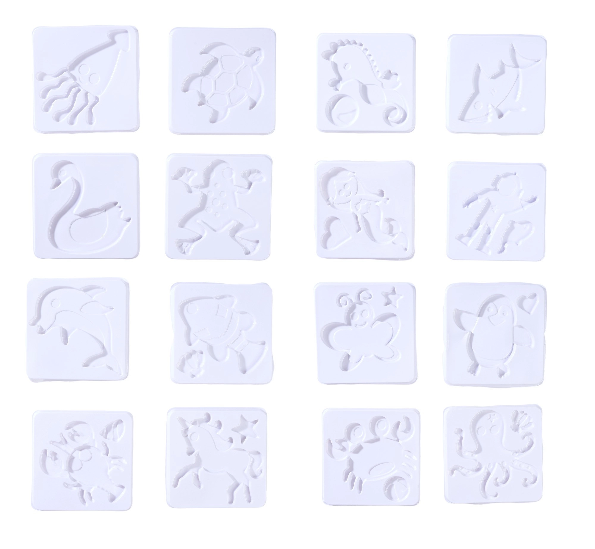 A készlet 13 gél színt és 16 újrahasználható formát tartalmaz különböző motívumokkal, így az alkotás mindig változatos és szórakoztató.