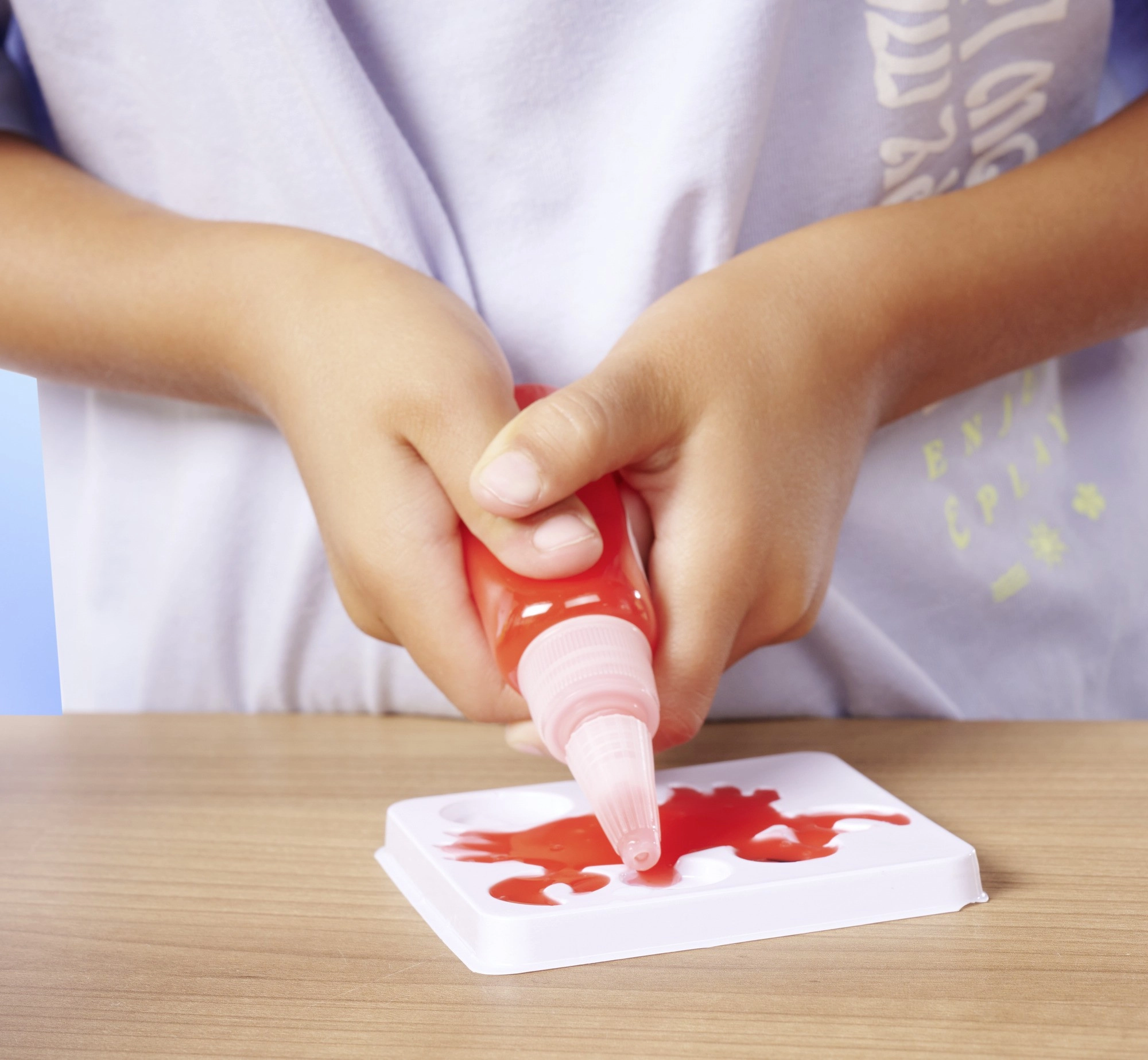 Minden flakon finom applikátorral rendelkezik, amely lehetővé teszi a formák részleteinek kitöltését maximális kontrollal. A gyerekek így könnyedén készítenek tiszta, határozott alakokat és vonalakat.