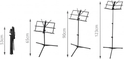 Ez a festett fém kottatartó háromlábú alappal és állítható magassággal van felszerelve, így állva és ülve egyaránt használható. A tartó még asztalra is helyezhető a legalacsonyabb magasságra állítva. Billenthető állvány könnyen alkalmazkodik az igényeidhez, míg az állítható dőlésszög megakadályozza a kották bezáródását. Alkalmas profik és amatőrök számára is.