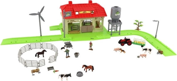 A készlet valósághű elemeket kínál, mint például állatok, pajta és kerítések, amelyek lehetővé teszik a gyerekeknek, hogy valódi farm jelenetet alkossanak.