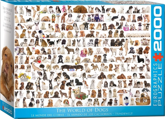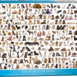 Élvezze a kihívást az EUROGRAPHICS Kutya világ puzzle-lel, amelynek teljes mérete 99,7 x 67,6 cm. Az egyedi vágási technika, amely eltér a szokásos rács szerkezetétől, különleges alakú darabokat eredményez, amelyek sarkai és szélei nem mindig egy síkban helyezkednek el, ezáltal növelve a kirakás nehézségét.