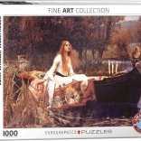 EUROGRAPHICS Shalott Kisasszony kirakó kihívást jelent egy elképesztő művészi alkotás létrehozására. Ez az 1000 darabos kirakó különleges darabok formáját és összerakásának nehéz szintjét nyújtja.
