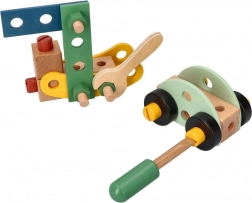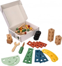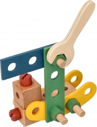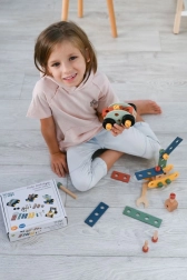 Bemutatjuk az egyedülálló Fa építő készletet gyerekeknek, amely lehetővé teszi a kéz-szem koordináció, a logikai gondolkodás és a kreativitás fejlesztését. A készlet tartalmaz csavarokat, léceket, anyákat, kerekeket, valamint csavarhúzót és kulcsot - mindent, ami szükséges a járművek összeállításához.