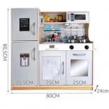 Ajándékozzon a gyerekeknek egy modern konyhát rengeteg valósághű részlettel. A LED világítás a szekrény alá, a szekrénybe vagy a „sütőbe” helyezhető, így autentikus hangulatot teremt. A főzőlapok tekerőinek forgatásakor jellegzetes „katt” hang hallatszik, ami új dimenziót ad a játéknak.