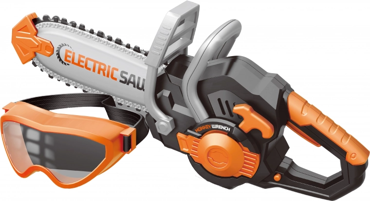 A védőszemüveg biztonságot nyújt játék közben. A bal oldalán található gomb lehetővé teszi a fűrész egyszerű aktiválását, ami valósághű játékélményt biztosít.