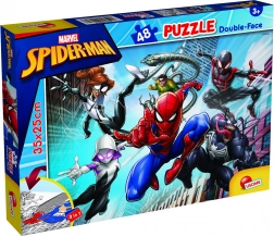 A Lisciani kétoldalas SPIDER-MAN puzzle remekül ötvözi a kirakást és az alkotást. Miután az egyik oldalon elkészült a kép, a gyerekek megfordítják a darabokat, és a másik oldalon saját színeikkel kelthetik életre hősük képregényvilágát. A 35 × 25 cm-es formátum és a 48 darab ideális a kis kirakórajongóknak.