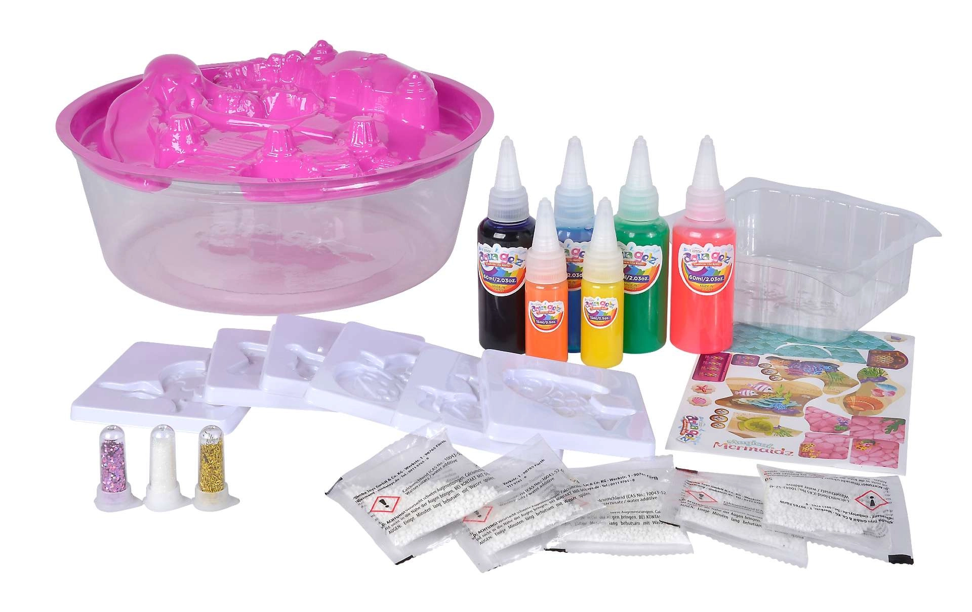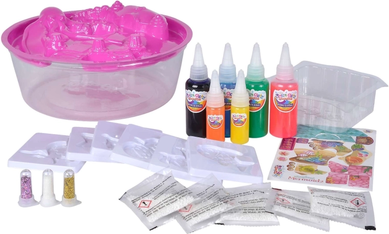 A Aqua Gelz Varázslatos sellők készlet végtelen szórakozást kínál a gyerekeknek víznél és asztalnál egyaránt. A speciális oldat és a színes gélek segítségével pillanatok alatt 3D figurákat alkothatnak tengeri lényekből és sellőkből. Az egyszerű folyamatnak és a precíz applikátoros flakonoknak köszönhetően az alkotás könnyű, tiszta és lebilincselő.