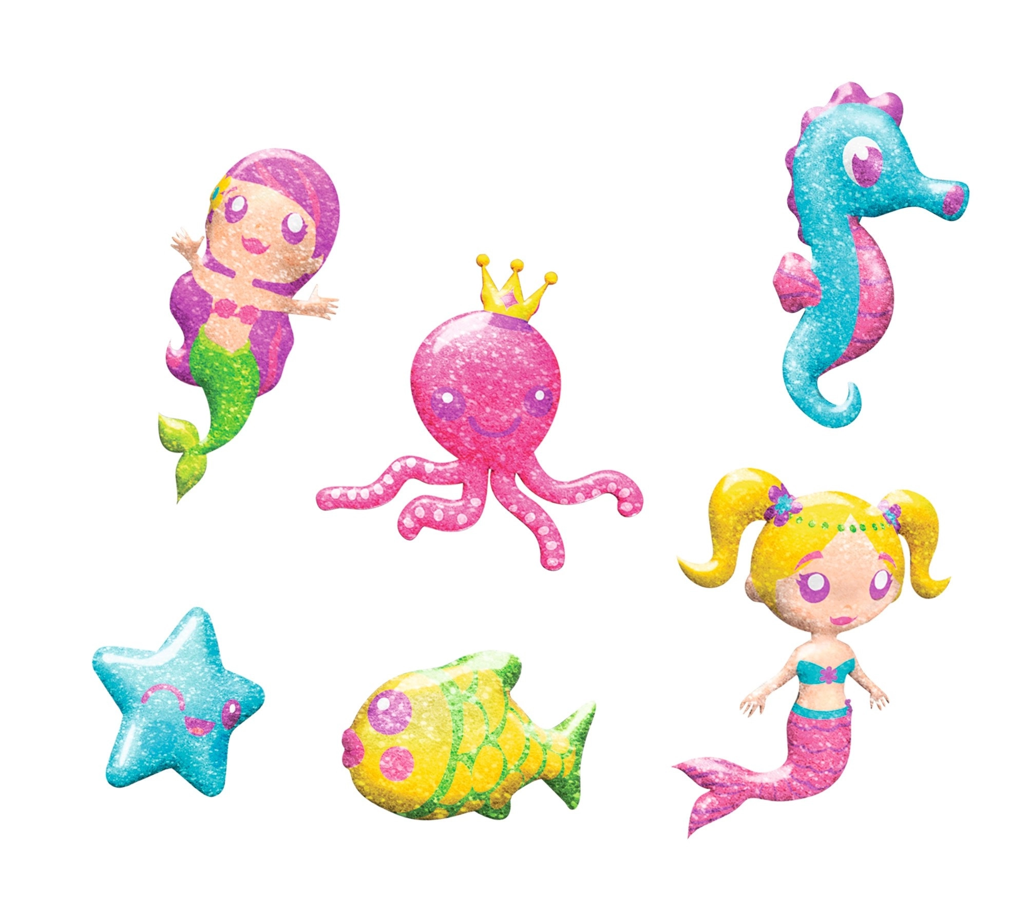 A keskeny fúvókás applikátoros flakonok megkönnyítik a színezést és az apró részletek kidolgozását. A csillámok bájos fényt kölcsönöznek a tengeri figuráknak.