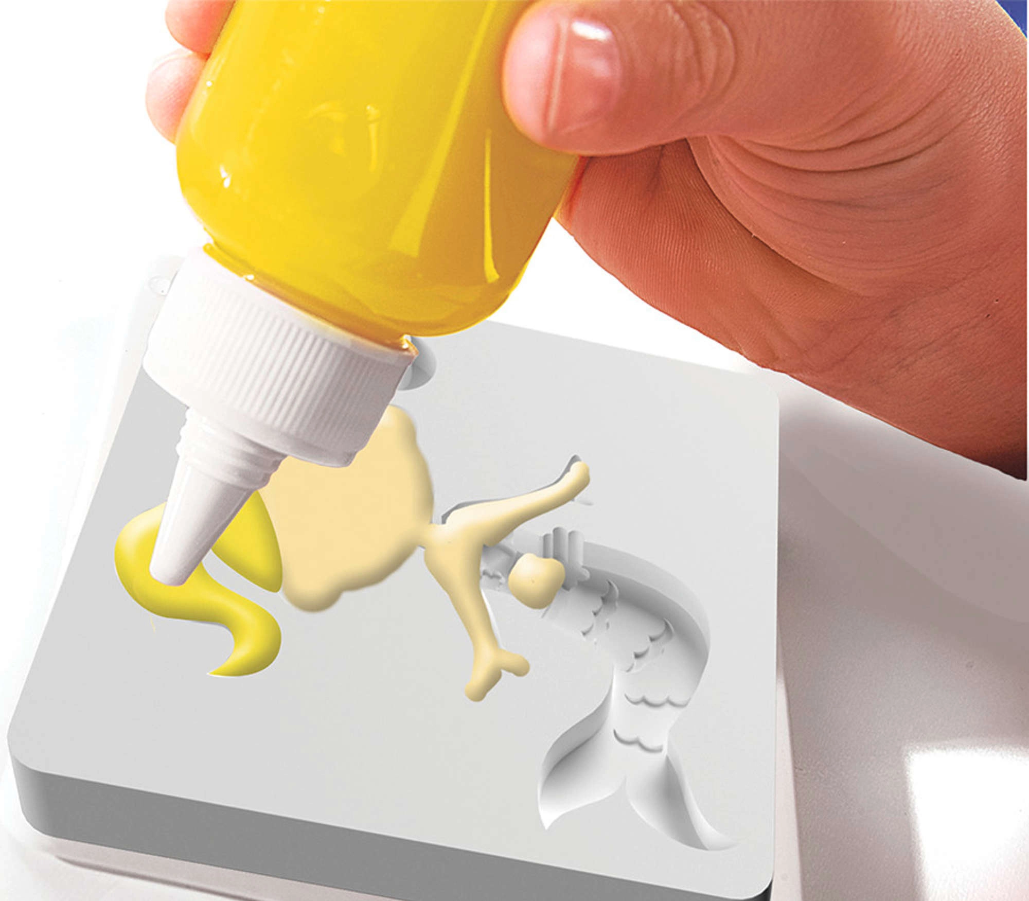 Töltsd ki a formákat színes gélekkel, merítsd az elkészített oldatba, és figyeld, ahogy a lapos kép puha 3D díszzé változik. Egyszerű, gyors és szórakoztató.