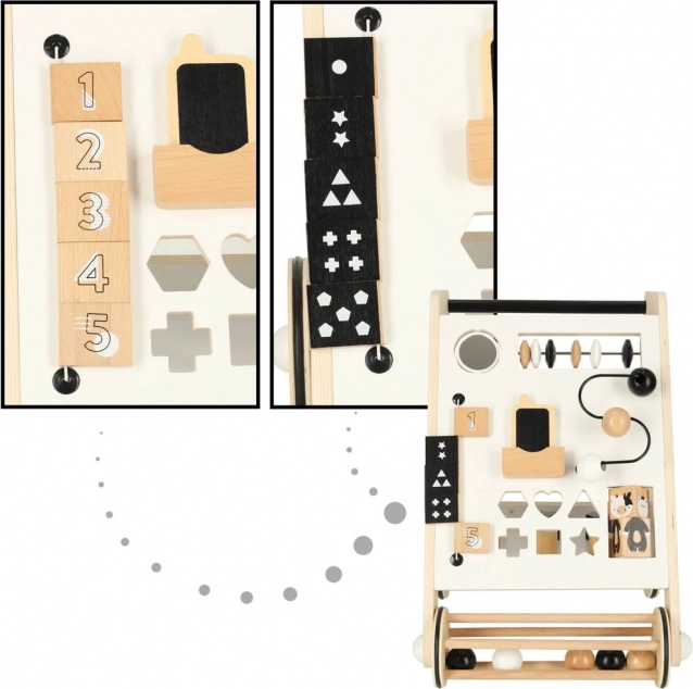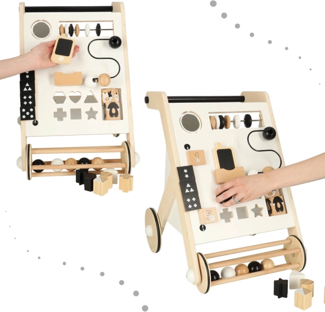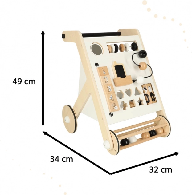 Fa járássegítő kicsiknek interaktív elemekkel, mint játék és tanulás formája. Támogatja a motoros készségek fejlődését és a kéz-szem koordinációt, miközben egyesíti a szórakozást a tanulással.