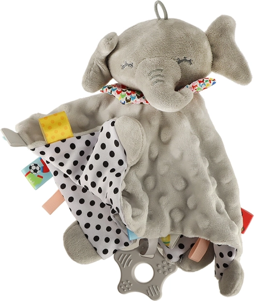 Az elefánt puha anyagból készült textúrával, amely serkenti a gyermek tapintását.