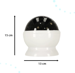 Az éjszakai csillagprojektor otthonos planetáriummá varázsolja a szobát. A színes csillag- és holdvetítés biztonságérzetet kelt, segíti a gyerekeket könnyebben elaludni, és egyben szép lakásdekor is. Az egyszerű, háromgombos vezérléssel gyorsan kiválaszthatja a kedvenc üzemmódot és a kupola forgását.