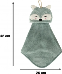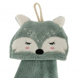 A törlőkendőn akasztófül található, így könnyen felakasztható az ideális magasságban lévő kampóra. A rókás zseb megkönnyíti a törölköző praktikus elpakolását óvodába, látogatáshoz vagy nyaralásra.