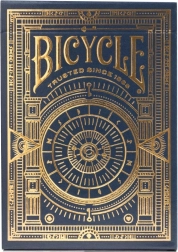 A BICYCLE márka ezen prémium kiadása a hagyományos minőséget hatásos, titokzatos megjelenéssel egyesíti. A sötétkék doboz gazdag arany részleteivel és dombornyomásával kiemeli a pakli luxus karakterét, amely örömet szerez játékosoknak, bűvészeknek és szenvedélyes gyűjtőknek egyaránt.