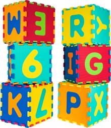 Színes készlet 36 puha EVA hab elemmel, kivehető betűkkel és számokkal, ideális 10 hónapos kortól. Biztonságos padlószőnyeget vagy térbeli formákat alkothatsz belőle, miközben a gyerekek játszanak és tanulnak. Az elemek puhák, vízállók, csúszásgátló felületűek, és könnyen tisztíthatók egy nedves kendővel. A szőnyeg szigeteli a hideget a padlótól és tomptja az ütéseket a kényelmes és biztonságos játékért.
