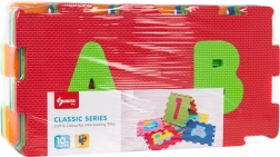 Ez az oktató habszőnyeg ötvözi a szórakozást és a tanulást: a gyerekek gyakorolják a színeket, formákat, az A–Z betűket és a 0–9 számokat, miközben fejlődik a finommotorika, a képzelőerő és a logikus gondolkodás. Az elemekből nagy játszófelület alakítható, vagy 3D tárgyak, például kocka vagy kisebb karám építhető.