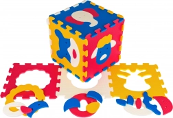 A középső, állatformájú elemek kivehetők, visszailleszthetők a nyílásokba, vagy térbeli tárgyakká, például kockává építhetők. Szórakozás, amely fejleszti a finommotorikát és a képzelőerőt.