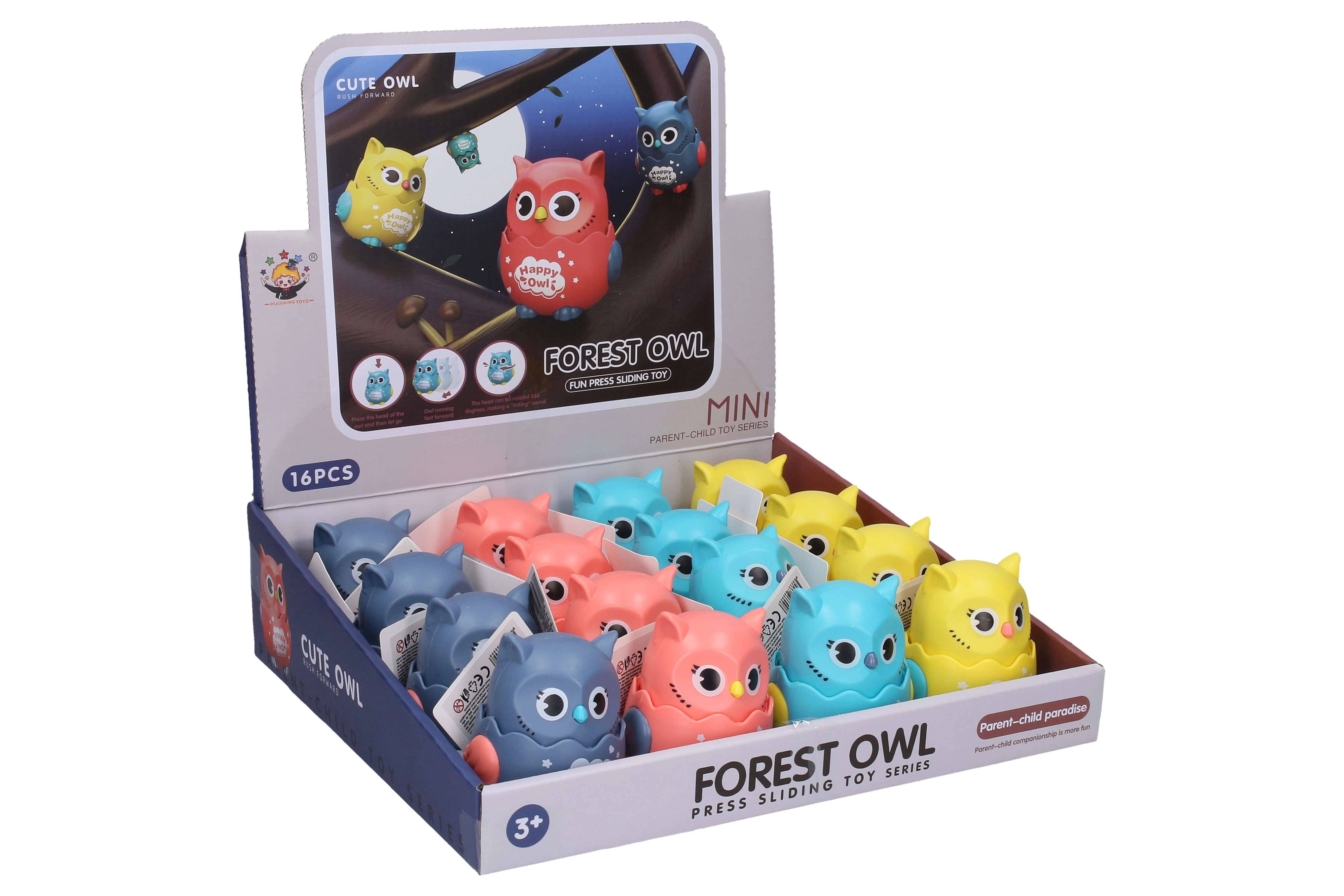 A 8 cm-es, aranyos kerekes bagoly minden 3 év feletti gyermeket megörvendeztet. Az okos mechanizmusnak köszönhetően a fej lenyomása után elindul, és rengeteg szórakozást nyújt. 4 színváltozatban kapható – kék, szürke, sárga és rózsaszín.