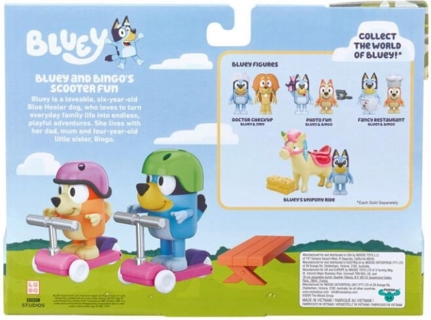 Élvezze a szórakozást a Bluey - Rollerrel való utazás játékkészlettel, amely életre kelti a népszerű animációs sorozat Bluey és Bingo karaktereit. Ez a készlet lehetőséget nyújt a gyerekek számára, hogy újraéljék kedvenc jeleneteiket, miközben fejlesztik kreativitásukat. Tartalmaz két mozgatható figurát, két rollert és két biztonsági sisakot.