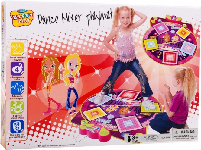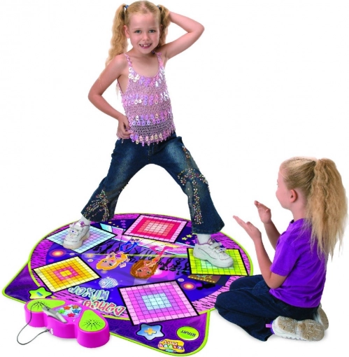 | A twister zenei változata, amely tökéletesen ötvözi a tornát a remek szórakozással. A játékosok feladata, hogy a lábukat a szőnyegen lévő négyzetekre helyezzék, amelyeket a vezérlőpanel jelez. A játék 4 zenei alapot tartalmaz különböző tánckoreográfia-konfigurációkkal. Minden figyelmet a zenei panelre kell összpontosítani, amely megmutatja azt a négyzetet vagy négyzeteket, amelyeket le kell nyomni. A "+" és "-" gombokkal továbbá változtatható a nehézségi szint a játék tempójának növelésével vagy csökkentésével. A zenei panel kijelzőt, hangszórót, "on/off" kapcsolót és hangerőszabályzó gombot tartalmaz. Lehetőség telefon csatlakoztatására kábellel. A játék 4 darab AA elemmel működik (4 x 1,5 V – nem tartozék). | |