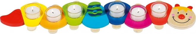 A GOKI Kamilla születésnapi hernyó egy egyedi dekoráció, amelyet évről évre újra használhat. Az egyes elemeket könnyedén különféle formákba rendezheti, hozzáadhatja az aktuális életkort jelző számjegyet, és a teamécseseket az mellékelt üveg mécsestartókba helyezheti. A minőségi, tömör fa és az egészségre ártalmatlan festékek révén beltéri használatra biztonságos.
