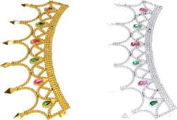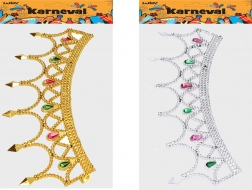 Karneváli korona tökéletes kiegészítője a jelmezednek. Az arany és az ezüst változat közötti választási lehetőséggel méltóságot és csillogást ad megjelenésedhez.