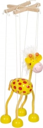 A bábu vékony zsinórokkal van rögzítve egy fa vezetőkereszthez.