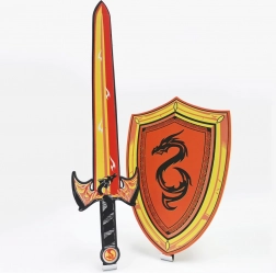 Ez a gyerek szett egy habszivacs kardot és egy pajzsot tartalmaz, látványos sárkánymintával. A könnyű habszivacs kialakítás biztonságos játékot biztosít sérülésveszély nélkül, és ideális azoknak a gyerekeknek, akik szeretik a lovagi kalandokat, a szamurájos játékokat és a jelmezes mulatságokat.