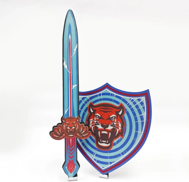 Biztonságos készlet kis harcosoknak: habszivacs kard és pajzs tigrismintával. Könnyű, tartós, és ideális gyerekjátékhoz, valamint jelmezek kiegészítőjeként. Puha habból készült a biztonságos játékért, sérülés kockázata nélkül.
