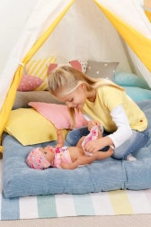 Fedezze fel a valósághű BABY born baba varázs cumival 43 cm méretben, amely nyitja és csukja a szemét a szájában megforgatott cumi hatására bármilyen testhelyzetben. A Soft Touch puha testnek köszönhetően kellemesen ölelhető, iszik a cumisüvegből, eszik pépet, bevizel a pelenkába vagy a bilibe, könnyezik, sőt még kakilni is tud – mindezt elemek nélkül. A csomagban 10 kiegészítő segíti az interaktív játékot, fejlesztve a fantáziát, az empátiát és a felelősségérzetet.