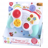 Ez a bájos PlayGo gamepad biztonságos és szórakoztató formában hozza el a gyerekeknek a fények és hangok világát. Az ergonomikus forma a kis kezekhez és az áttekinthető kezelőszervek ösztönzik a kíváncsiságot, fejlesztik a finommotorikát és a szem–kéz koordinációt. A 14,5 × 5,5 × 10,5 cm-es kompakt méretnek köszönhetően még a legkisebbek is könnyen tarthatják.