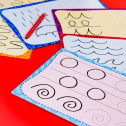 A csomagban 18 tábla található, amelyekre a csomag részét képező egyedi ergonomikus tollal lehet írni és rajzolni.