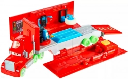 Ismerd meg a Verdákból Maniek kamionját a Glow Racers kiadásban, amely dupla élményt nyújt: masszív, tologatható szállító, és egyben kihajtható játékkészlet részletes szervizközponttal. Nyisd ki a pótkocsit, fedezd fel Guidó figuráját, aki készen áll a gumicserére, és indulhat a következő versenyküldetés.