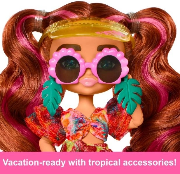 A BARBIE Extra Fly Minis mini baba ideális azoknak a gyerekeknek, akik imádják a divatot és a fantáziadús játékot. Trópusi megjelenése gyönyörű fürdőruhából, zöld szandálokból és pálma fülbevalókból áll, amelyek kiemelik a nyári hangulatot. Kompakt méretének köszönhetően remek utazáshoz, és könnyen elfér a hátizsákban.