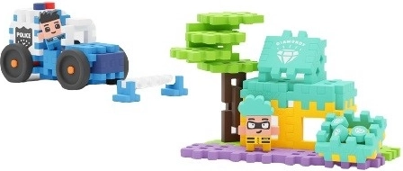 Az építőkészlet 80 elemet és két speciális figurát tartalmaz. A gyerekek lehetnek hősies rendőrök vagy megpróbálhatnak elmenekülni mint Tettresz Gizmo. Szítse kreativitásukat és képzeletüket.