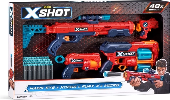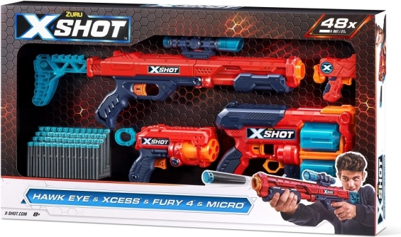 X-Shot Combo készlet: Hawk Eye + Xcess + Fury 4 + Micro pisztolyok