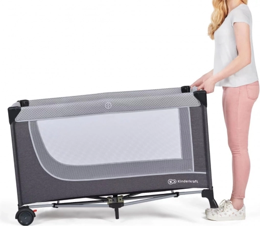 Amikor a gyermeked nagyobb lesz, a cipzáras oldalsó bejáraton önállóan ki tud jönni a kiságyból. Ez növeli az önbizalmát, és támogatja az önállóság pillanatait. - Praktikus kerekek