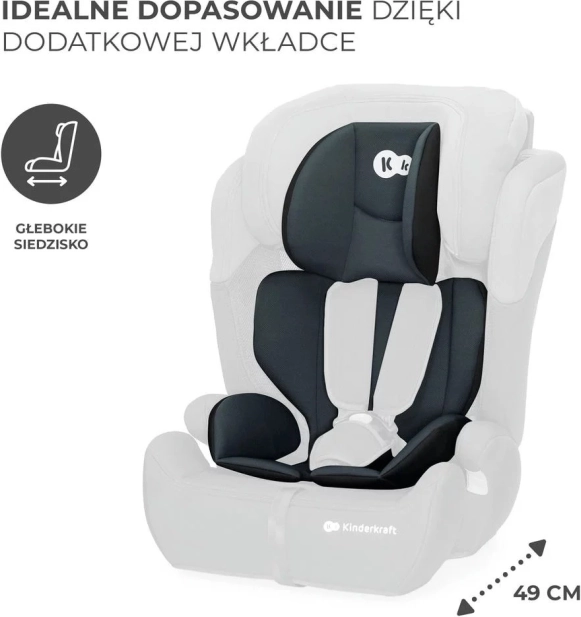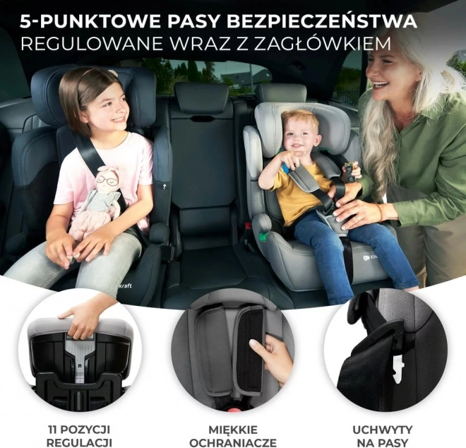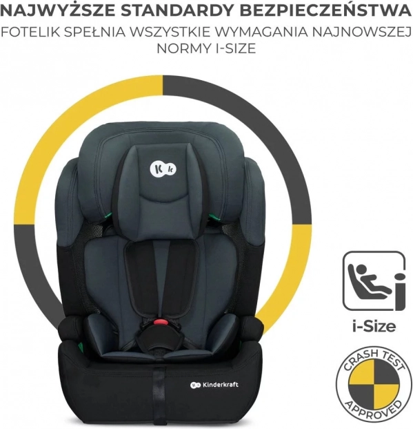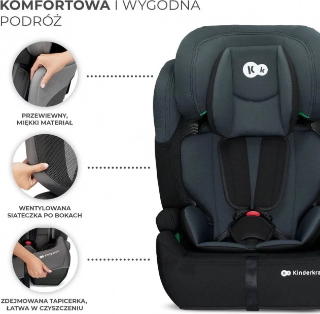 A KINDERKRAFT COMFORT UP i-Size univerzális autósülés 76–150 cm közötti gyermekeknek felel meg, és megfelel az R129 i-Size szabványnak, így kb. 15 hónapostól 12 éves korig biztonságot nyújt. Gyors beszerelést hárompontos biztonsági övvel kínál ISOFIX nélküli autókba is, 11 fokozatban állítható fejtámlát övekkel, széles és mély ülést, kivehető moduláris betétet a kisebb gyermekeknek, valamint 5 pontos belső hevedert puha párnákkal, amely könnyen elrejthető. A légáteresztő anyagok és az oldalsó háló biztosítják a kényelmet és a szellőzést minden utazás során.
