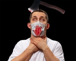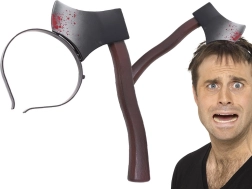 A fejpánthoz rögzített „balta” két vége meglepően valósághű hatást kelt egyetlen csepp vér nélkül. Ideális a figyelemfelkeltő, horroros megjelenéshez.