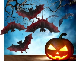 Négy részletgazdagon kidolgozott denevér texturált szárnyakkal adja meg a megfelelő titokzatosságot beltéren és kültéren egyaránt. A dekorációk könnyűek, egyszerűen felakaszthatók, és remekül mutatnak fákon, ablakban, polcokon, illetve pókhálóval és tökökkel kombinálva. Ideális Halloweenre, tematikus bulikra és fotósarkokhoz.